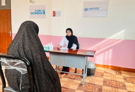 أسس مكتب مكافحة المخدرات والجرائم التابع للأمم المتحدة، بالتعاون مع منظمات دولية، عيادات صحية خاصة للسجينات في سجون كابل وهرات. بالإضافة إلى ذلك، أطلق المكتب مركزاً للزيارات اليومية للنساء المدمنات على المخدرات في مدينة هرات.